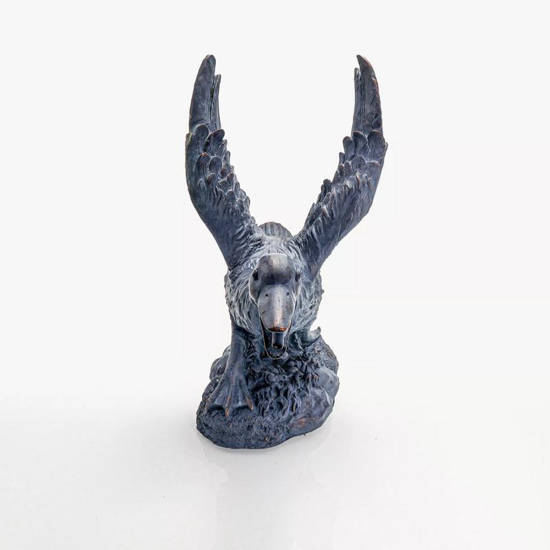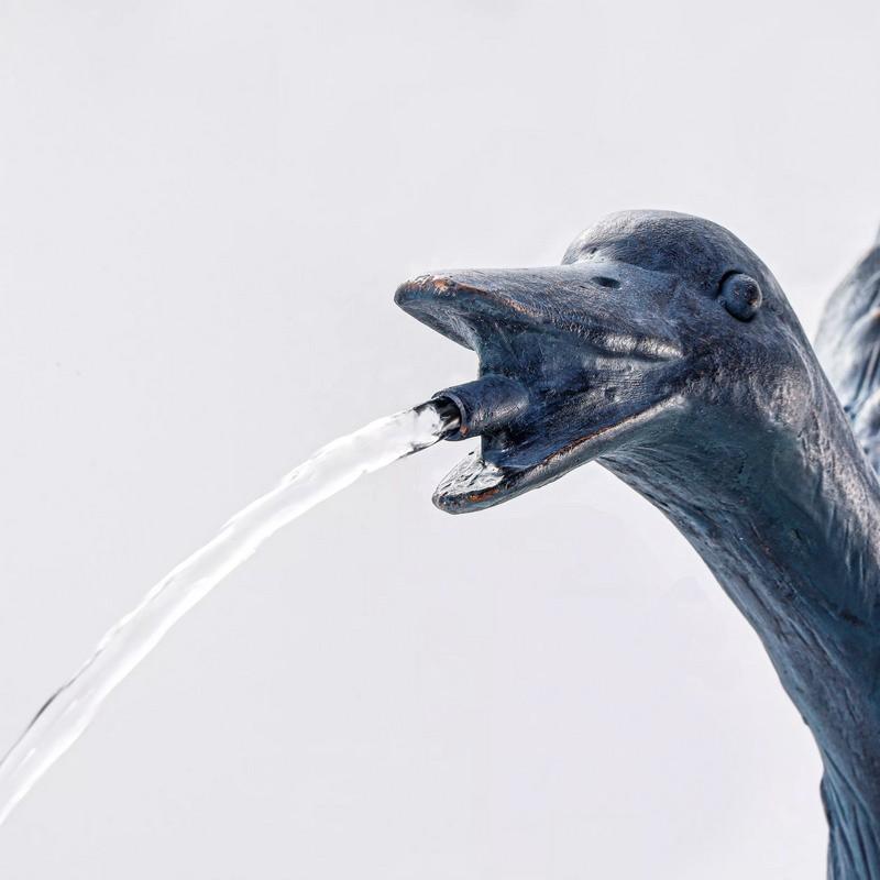 Élément de fontaine Oie Gustave avec aile dépliée, sujet cracheur d'eau.
